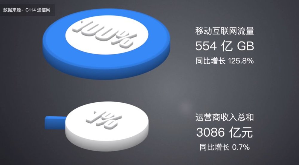 但廉价流量给运营商带来的压力已经不容小视,用户消耗的流量一直在增加,却并没有给运营商带来利润上的增长。根据 C114 通讯的数据,2019 年上半年我国三大运营商的移动互联网流量已经达到了 554 亿 GB,同比增长 125.8%,而上半年三大运营商的收入总和为 3086 亿元,总比增长 0.7%,对比明显。