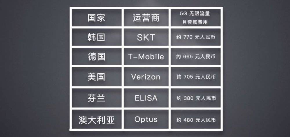 另一 5G 市场美国目前像 Verzion 和 T-Mobile 等主流运营商的 5G 套餐定价也是 500-700 元左右,同时速度和流量总会有一些受到限制,即便流量没有限制,速率也并不能达到最高水平。