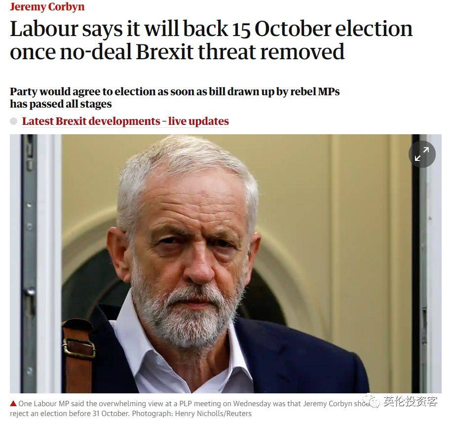 可以看出,虽然鲍里斯有卡明斯运筹帷幄,但科尔宾也不是吃素的,他要把自己放在阻止“无协议脱欧”的救世主、打败鲍里斯大魔王的位置上,再举行大选。
