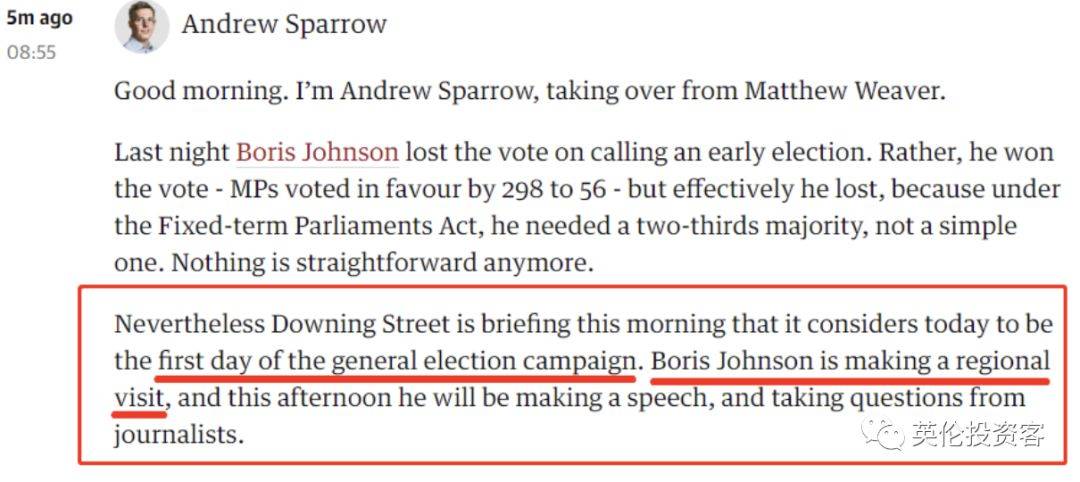 而根据英国媒体今天的最新报道,英国首相府已经把今天(2019年9月5日)当成了大选竞选活动的第一天,鲍里斯·约翰逊将即日动身前往英国各地,开始竞选路演。
