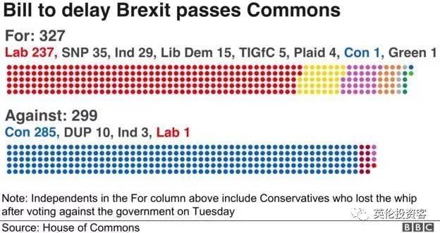 由于该法案还包括向欧盟提出短期延迟脱欧的请求,所以还有三读阶段。