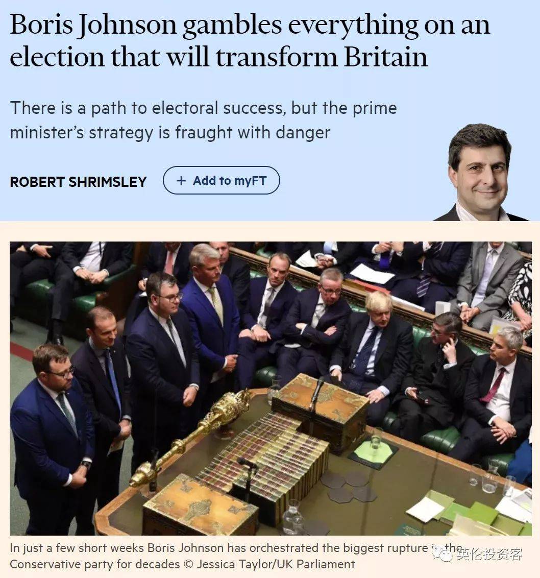 话句话说,这个提前大选,其实就是第二次脱欧公投,投给工党科尔宾代表留欧,投给保守党鲍里斯代表脱欧,未来所有竞选活动继续围绕脱欧话题展开。