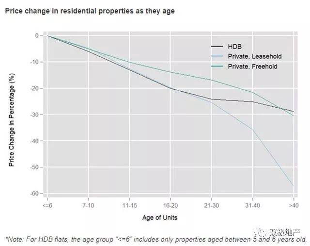 在新加坡,这个问题也非常突出。建筑寿命小于20年的住宅,永久产权的私人住宅比政府组屋的折旧速度慢很多。
