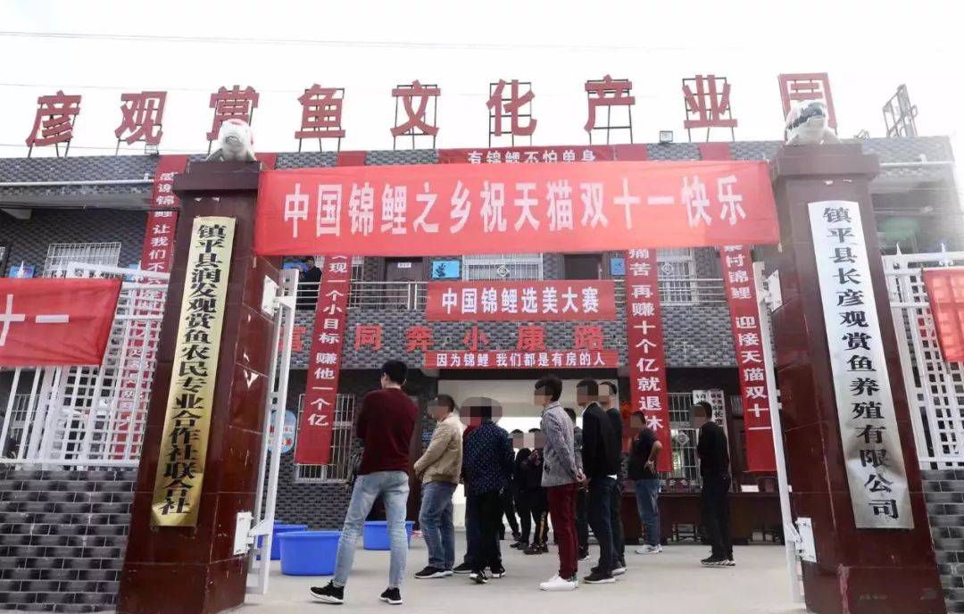 在周老板的家乡河南向寨村,基本家家户户养锦鲤,两千多人的村子里有2180亩鱼塘,养殖锦鲤8000多万条,全中国锦鲤的4成都在这,160多家淘宝店年销售总额过亿。