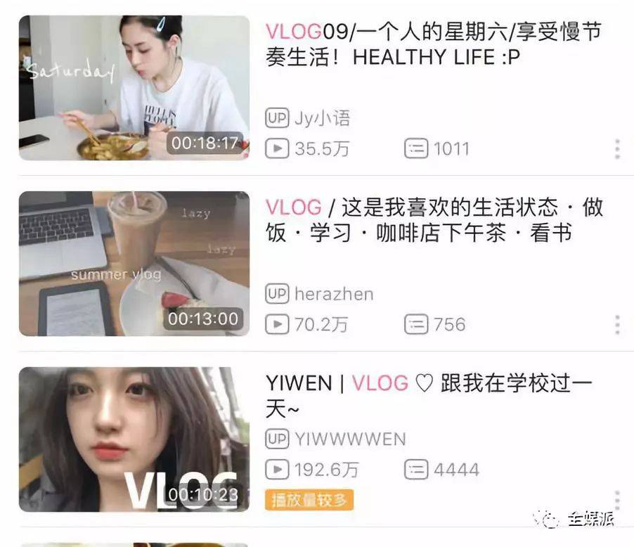 或许这也可以解释为什么“流水账”式vlog会成为风口。做饭、学习、看书、喝咖啡、取快递......当搜索vlog时,映入眼帘的总是一些平凡人的琐碎日常,以及与日常的重量不成比例的高播放量。为什么普通人将自己平凡无奇的一天拍摄记录下来,会有如此多的观众观看?答案或许正是——解压。