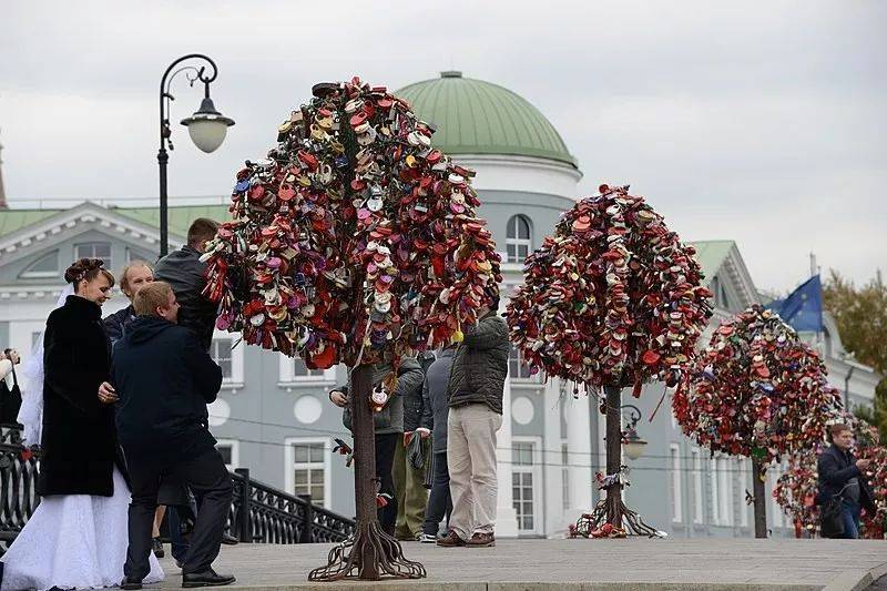 △俄罗斯卢日科夫大桥上,有几棵“铁树”专门供游人挂锁/whatdewhat