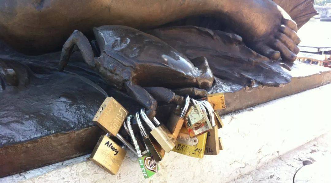 除了这些无辜被毁的公物和文物,桥下的河流也未能幸免。把锁固定在桥上之后,游客一般会将钥匙抛进河里,表示对这段感情“永远忠诚”。
