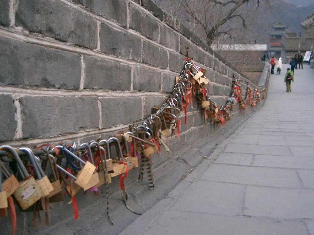 在你以为这些同心锁正在发挥它神秘力量的时候,其实早已经被“偷心贼”们强行卸下,刻上别对情侣的名字了。