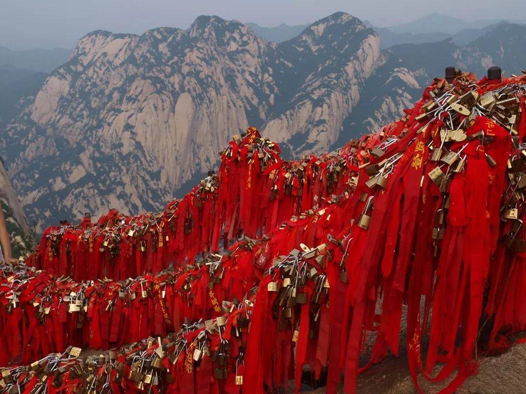 不论是在绝险的天都峰鲫鱼背,或是在莲花峰、始信峰,只要有护栏铁链的地方,就能看到密密麻麻的同心锁。