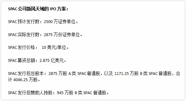 新风天域作为首家登陆纽交所的非美国SPAC公司,上市方案如下: