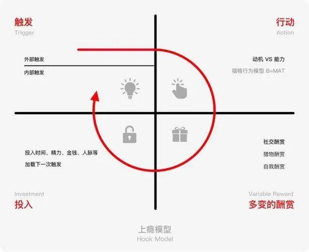 上瘾循环分为四步:触发→ 行动→ 多变的酬赏→ 投入。