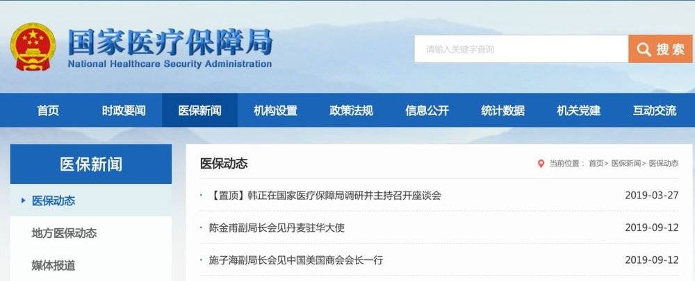 国家医保局网站有一个栏目叫医保动态,其中一条新闻一直处于置顶状态,那是3月26日政治局常委、国务院副总理韩正到国家医保局座谈会后的报道。