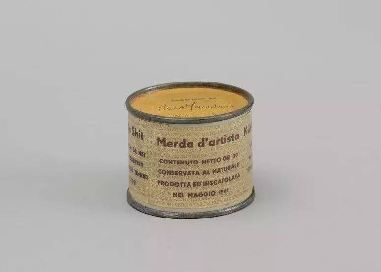 皮耶罗·曼佐尼的《艺术家的粪便》。2016年,构成整个抽象作品的其中一个罐头在米兰卖出了275000欧元的价格。图片来源:Artists Rights Society, New York / SIAE, Rome