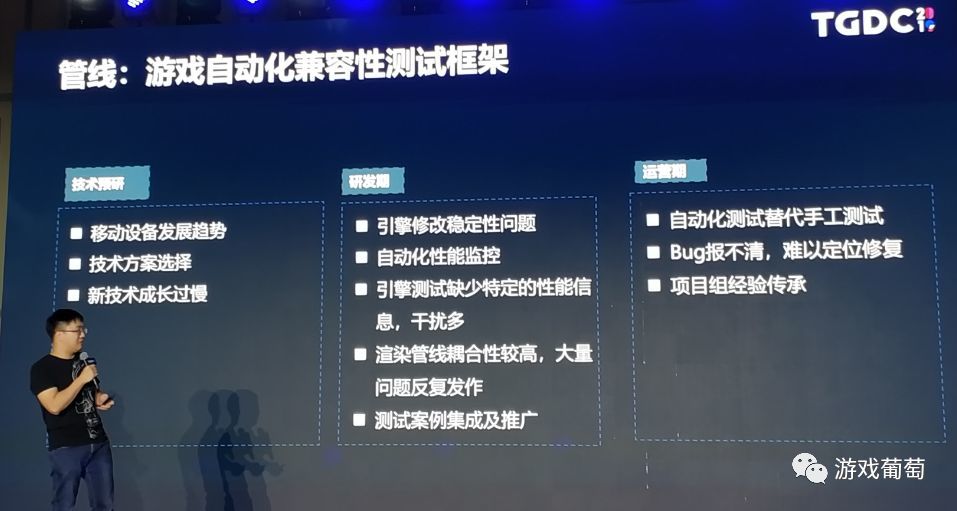 自动化兼容性测试已经在天美工作群分享共建,各个项目一起用,迭代各种各样有益的测试用例的框架。有了这个自动化监用性测试框架之后,我们就能很安心的做一些引擎开发和特性,然后跟上业界的一些技术趋势,把握一些技术趋势。