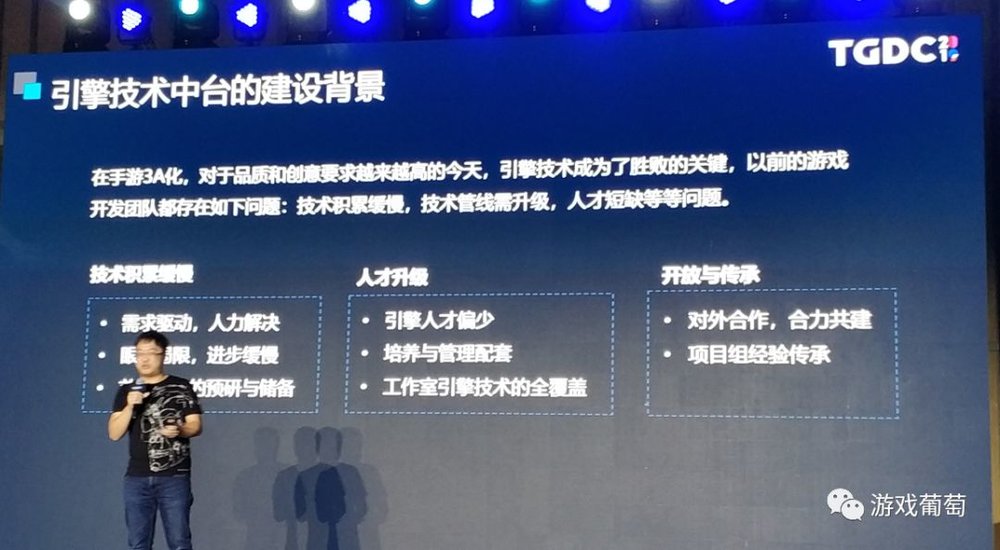在手游AAA化、对于品质和创意要求越来越高的今天,技术已经成为胜败的关键。以前游戏开发团队往往会存在三类问题:技术积累比较缓慢,技术管件需要升级,人才需要升级。