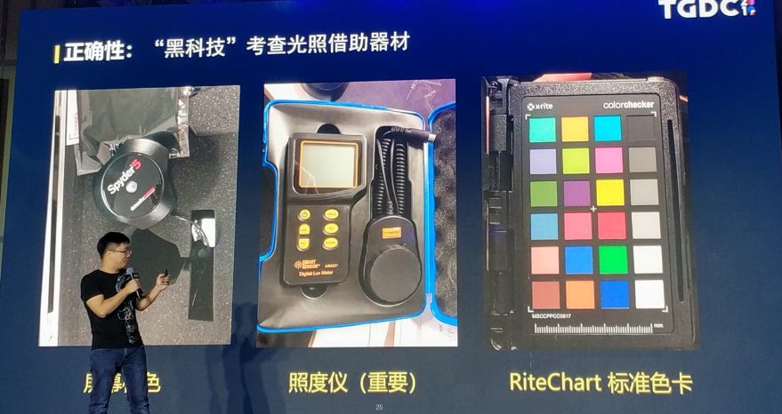 最后一个要点是正确性。我们借助了很多“黑科技”去考查光照,我们借助的素材有屏幕校色,照度仪(重要)和RiteChart 标准色卡。我们在各种环境下测量球谐参数SH以及Lightmap,在Substance与Unity里面都提供参考固有色比色卡。经过这样严格、科学的验证,才能得到目前3A级的《使命召唤手游》的画面。