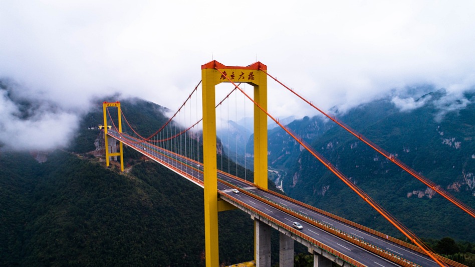 北盘江大桥,桥面到谷底垂直高度565米,相当于200层楼高,是世界最高的桥梁。