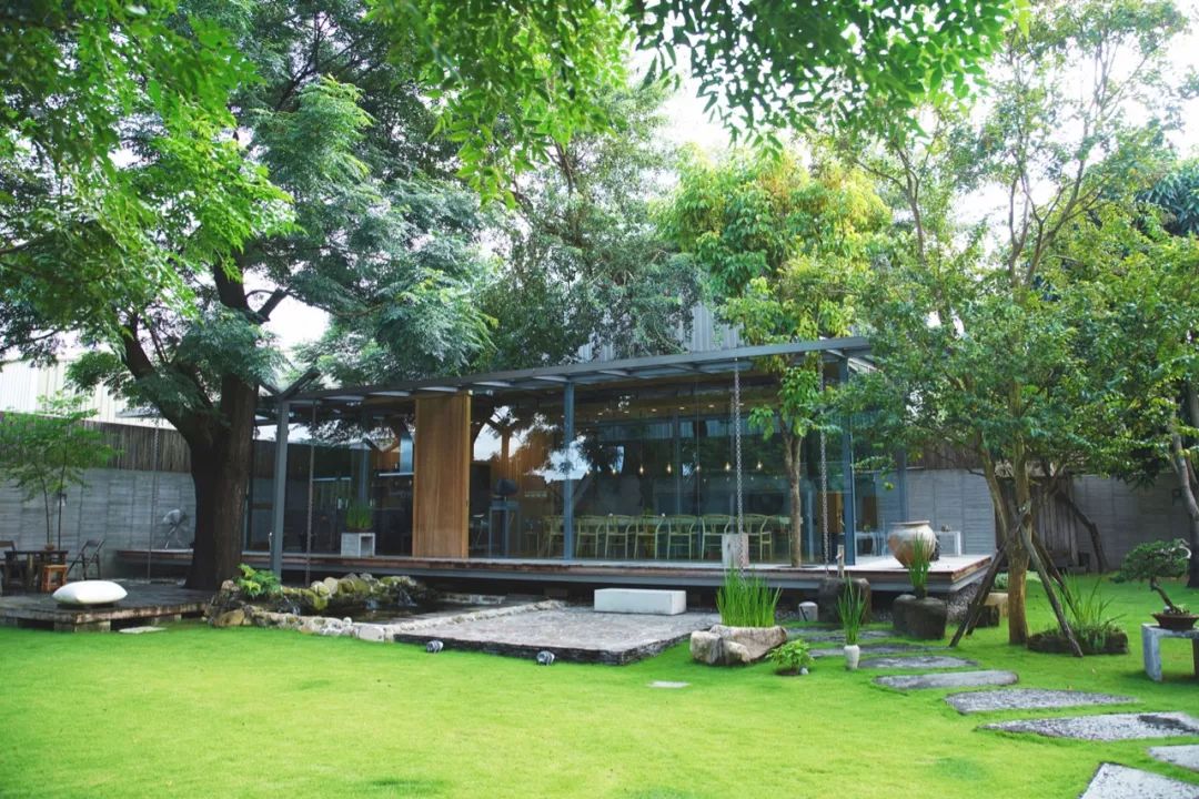 另外我在毛舍的对面,也建造了一个20坪(66㎡)的玻璃餐厅。朋友过来拜访,便在餐厅中相聚言欢。