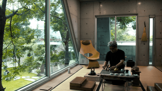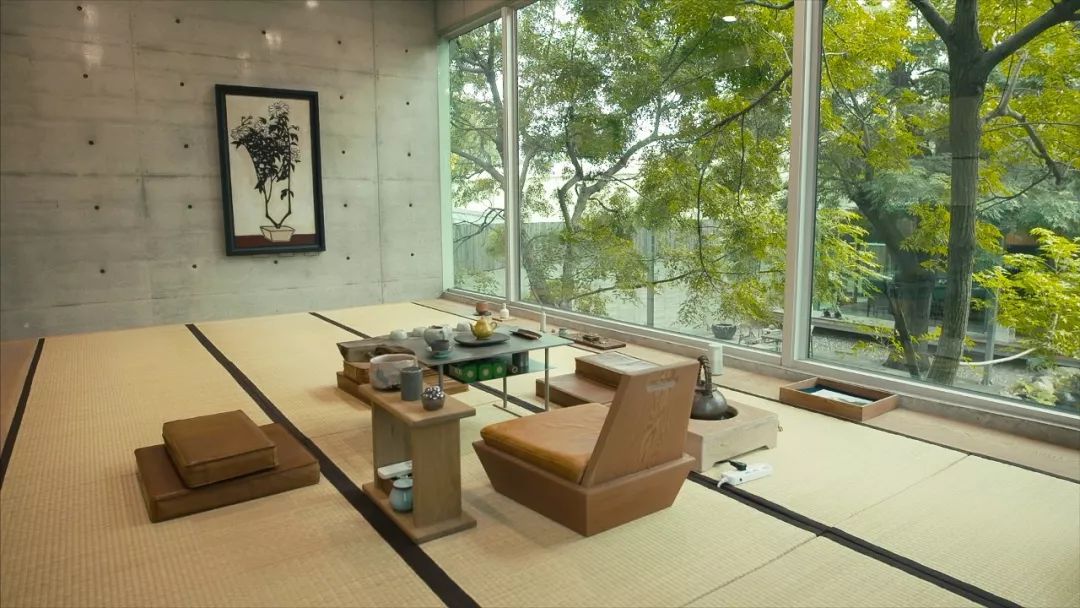 茶室的设计灵感,来源于我十年前看过的一部纪录片《巴赫灵感》,当时日本的俳优演员坂东玉三郎,和大提琴家马友友,他们在森林里的一个平台上研究舞剧,这个场景让我印象非常深刻,我就把影片中的环境在这里复刻出来。