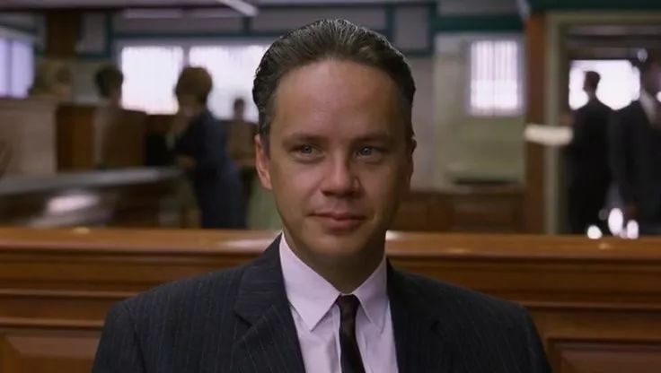 蒂姆·罗宾斯在屋顶上神秘的笑容。值得一提的是,演完《肖申克救赎》后,罗宾斯紧接着自编自导了《死囚漫步》,继续讨论惩戒与自由的话题,获得了奥斯卡多项提名和影后。