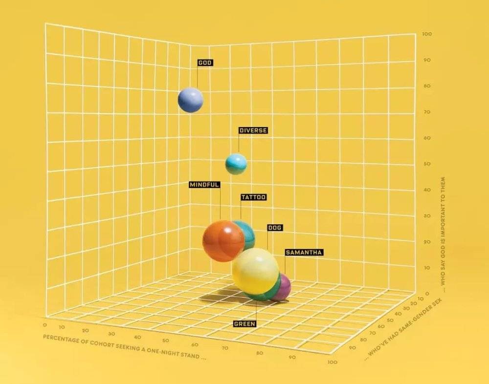 Chris McKinlay利用Python脚本浏览了上百道OkCupid的问卷题目,然后把女性用户分为七类,每一类都会贴上独特的标签,例如“多才多艺的”和“细心体贴的”等等。