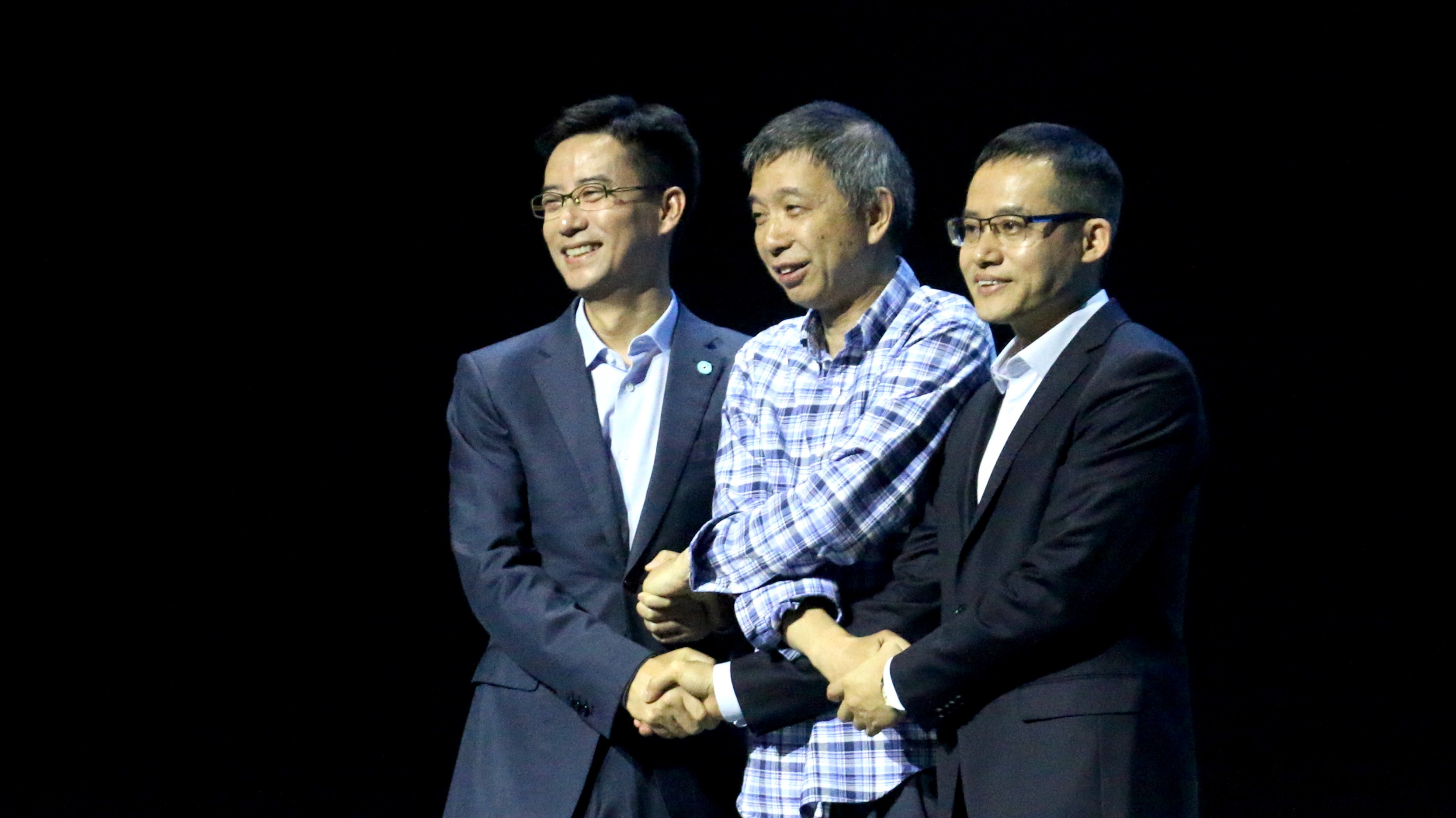 最后,在主持人的撺掇下,阿里云的三任掌门人站起来合影,胡晓明把王坚拉到了中间,王坚双手交叉握住了胡晓明和张建锋的手,胡晓明剩下的一只手握住了张建锋的另一只手。