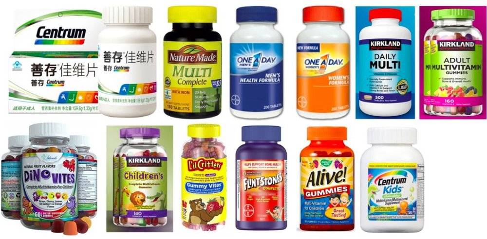 图:市面上常见的成人和儿童的复合维生素 (作者作图)
