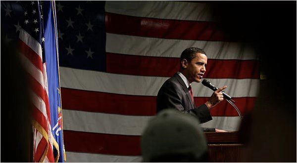 2008年2月,参议员巴拉克·奥巴马在简斯维尔的通用汽车装配厂发表讲话