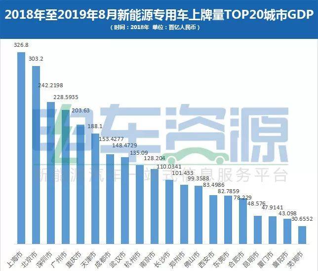 电车资源根据公开数据,整理了上牌量前二十的城市的2018年GDP。2018年这20个城市的GDP总值达到了27.8万亿元人民币,占比全国GDP的30.9%。