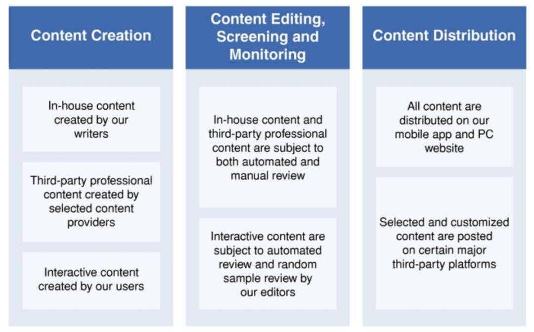 招股书还透露了36氪的内容生产流程包括内容生产、内容编辑与筛选监测、内容分发三个环节。