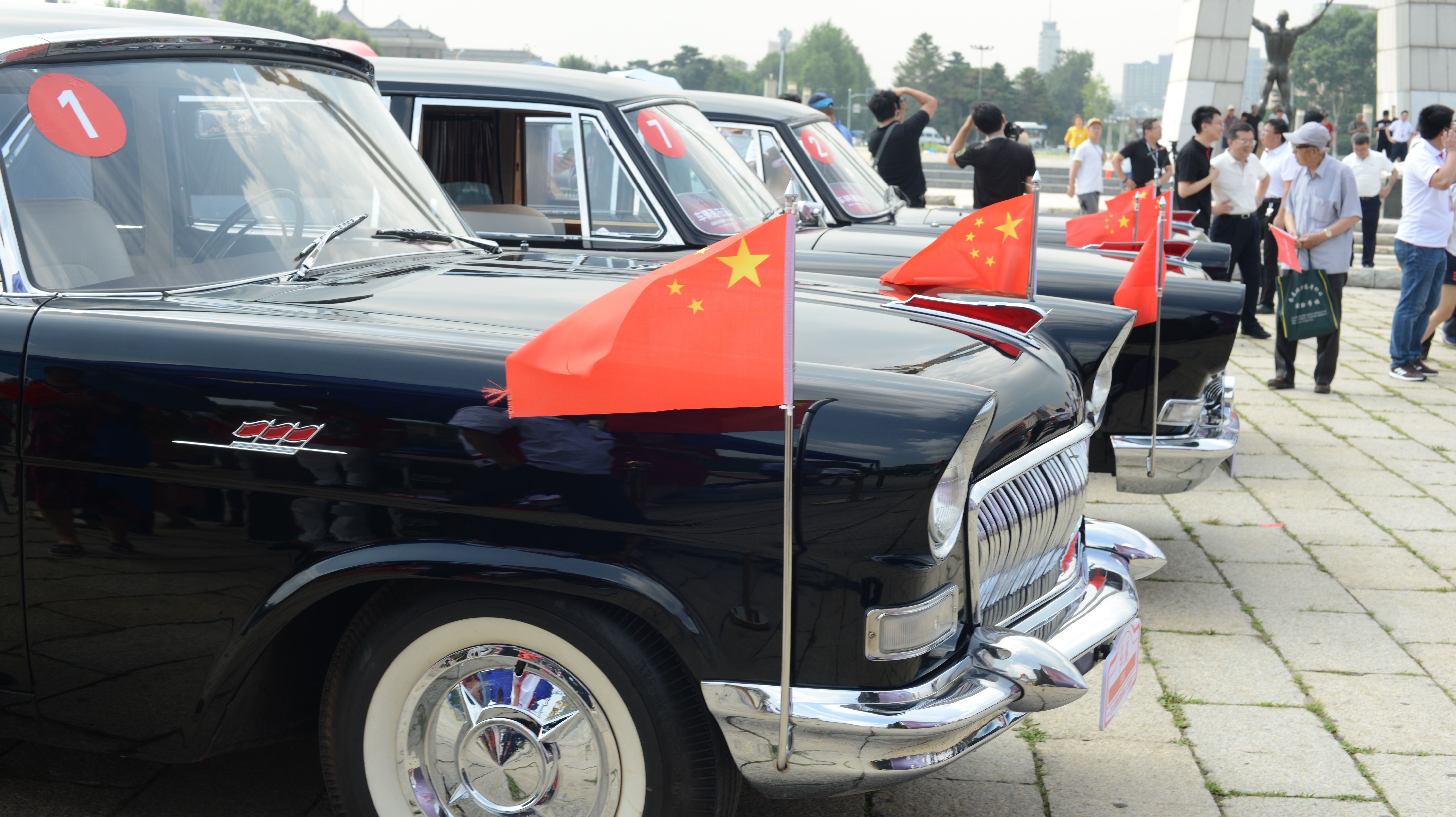 35辆红旗轿车齐聚首都汽车公司,俨然成为一道别样风景。所到之处,引来无数市民观看,“红旗!红旗!”的呼喊声响彻天际。