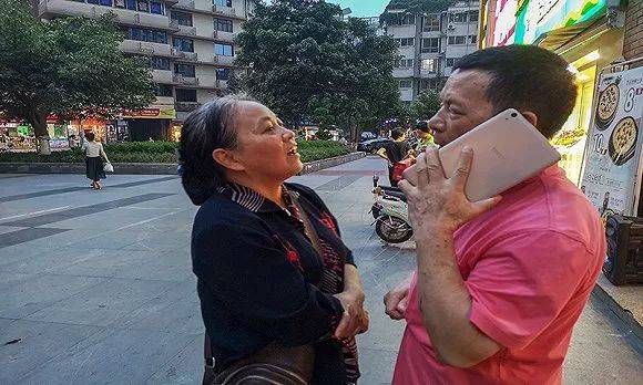 演出开始前,冯懿萍带张世维找商家借电,张世维给店主打电话。摄影:翟星理