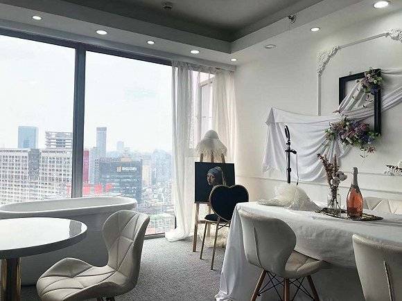 红鼎国际A座的40楼,有家当下在重庆年轻女孩里最热门的婚纱体验馆“BIANCHE白羊梦”,做的是把高空下午茶、Instagram风格的拍照布景与穿上婚纱体验结合的生意,业主是个叫张雪的96年漂亮女孩。