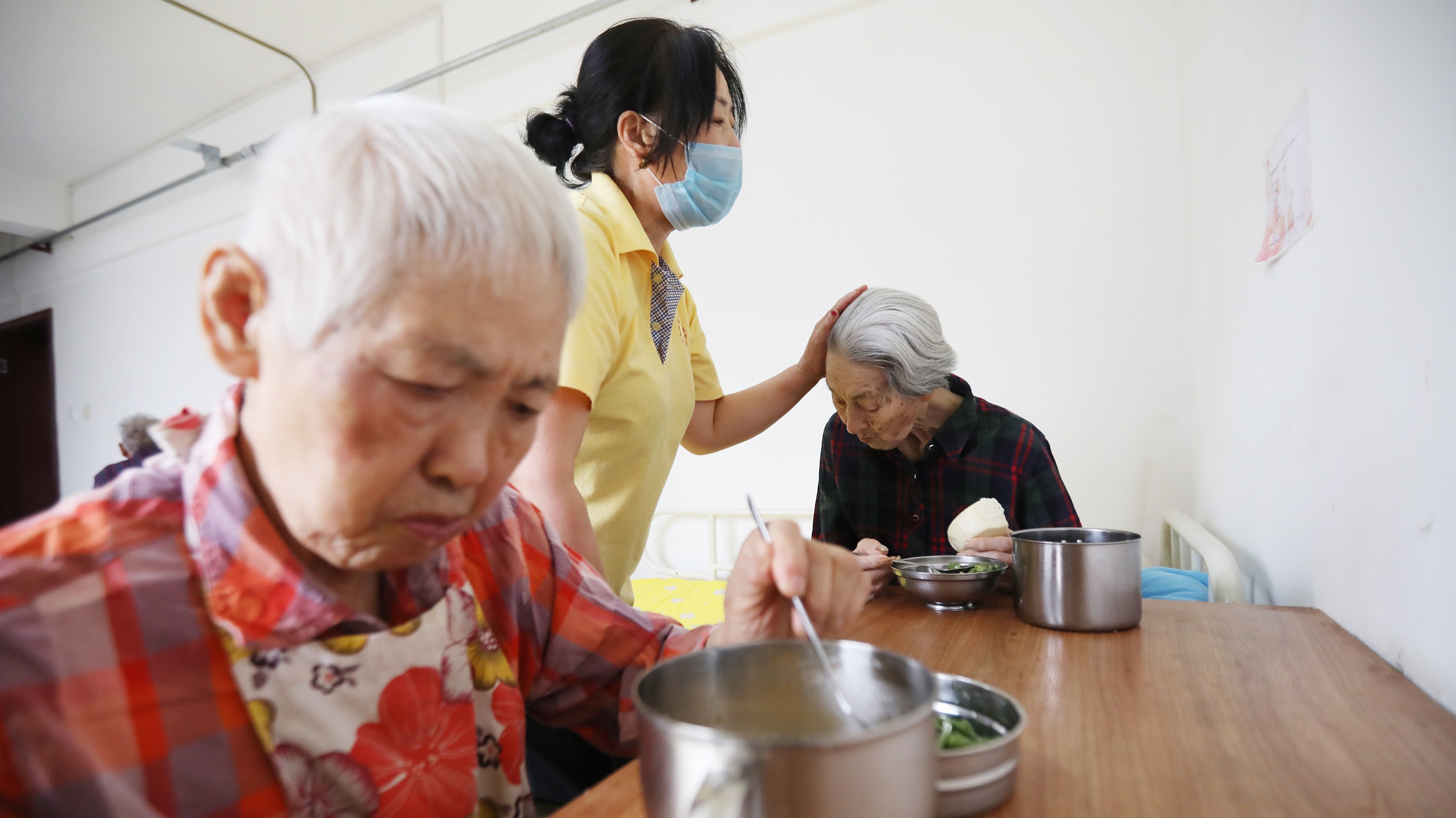 时间在这里流逝的格外缓慢,一到饭点,老人们三两一对地踱步走进餐厅,走廊里弥漫的都是家常饭菜的味道。廖淑梅刚满24岁,老人看见孙子辈的护理员总是格外关心,手里揣个水果都要硬塞给她。