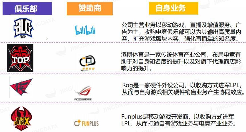 此外,苏宁、京东、哔哩哔哩、滔搏体育等均成立自己的战队,进入电竞赛事。