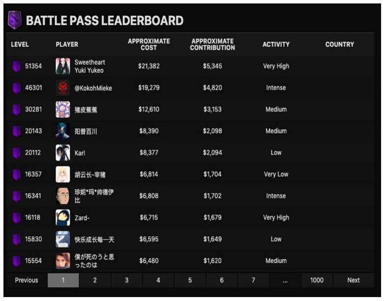2019“勇士令状”付费第一充值21382美元资料来源:Stratz eSports