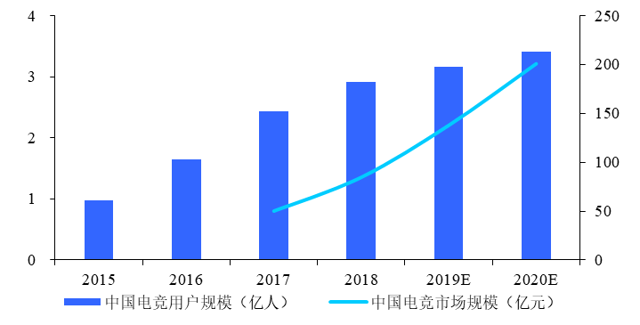 中国电竞发展速度超出预期(左轴为用户规模) 数据来源:《2018中国电竞运动行业发展报告》,国泰君安证券研究