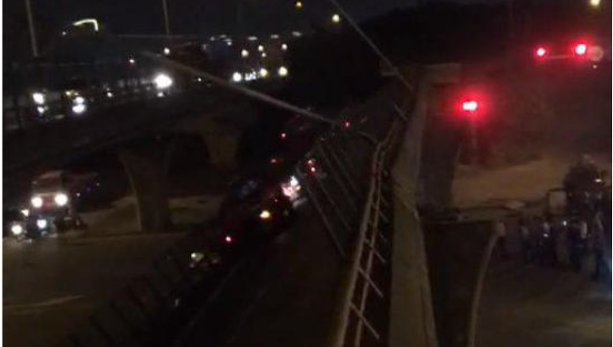 江苏无锡高架桥坍塌,现场拉起爆破警戒线
