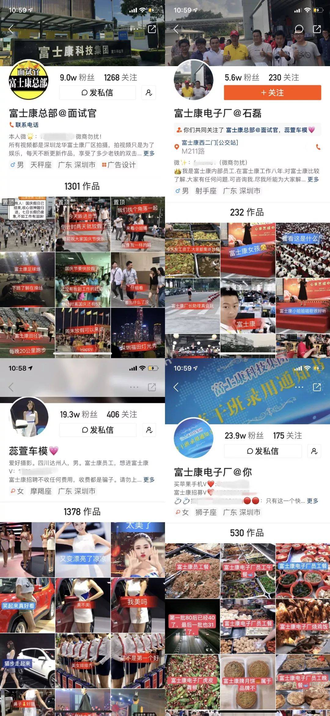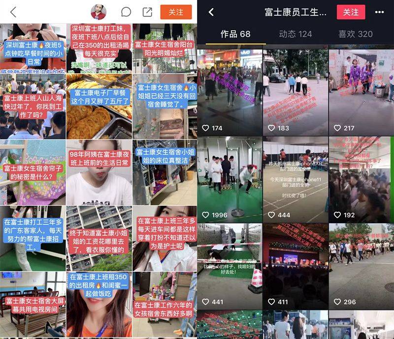 快手、抖音上的富士康员工