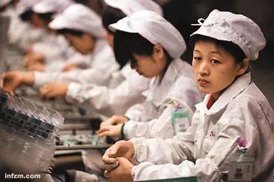 图片来源:2010年南方周末报道,其报道中的图注为“富士康生产线上的工人,目光呆滞”