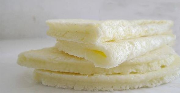 别再问奶豆腐和豆腐有啥关系了,除了共用一套模具,莫得关系。如果不是方便营销让你们这群外地人携带,正宗牧民甚至直接把奶豆腐装盆里压成型,一块奶豆腐比你八块腹肌还大: