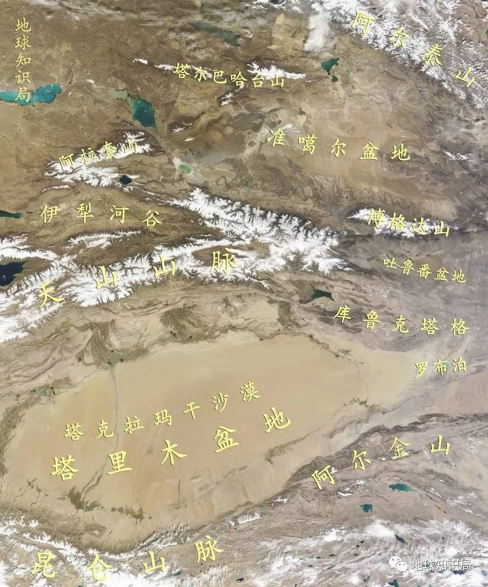 一天山山脉为大致分界的南疆、北疆、东疆