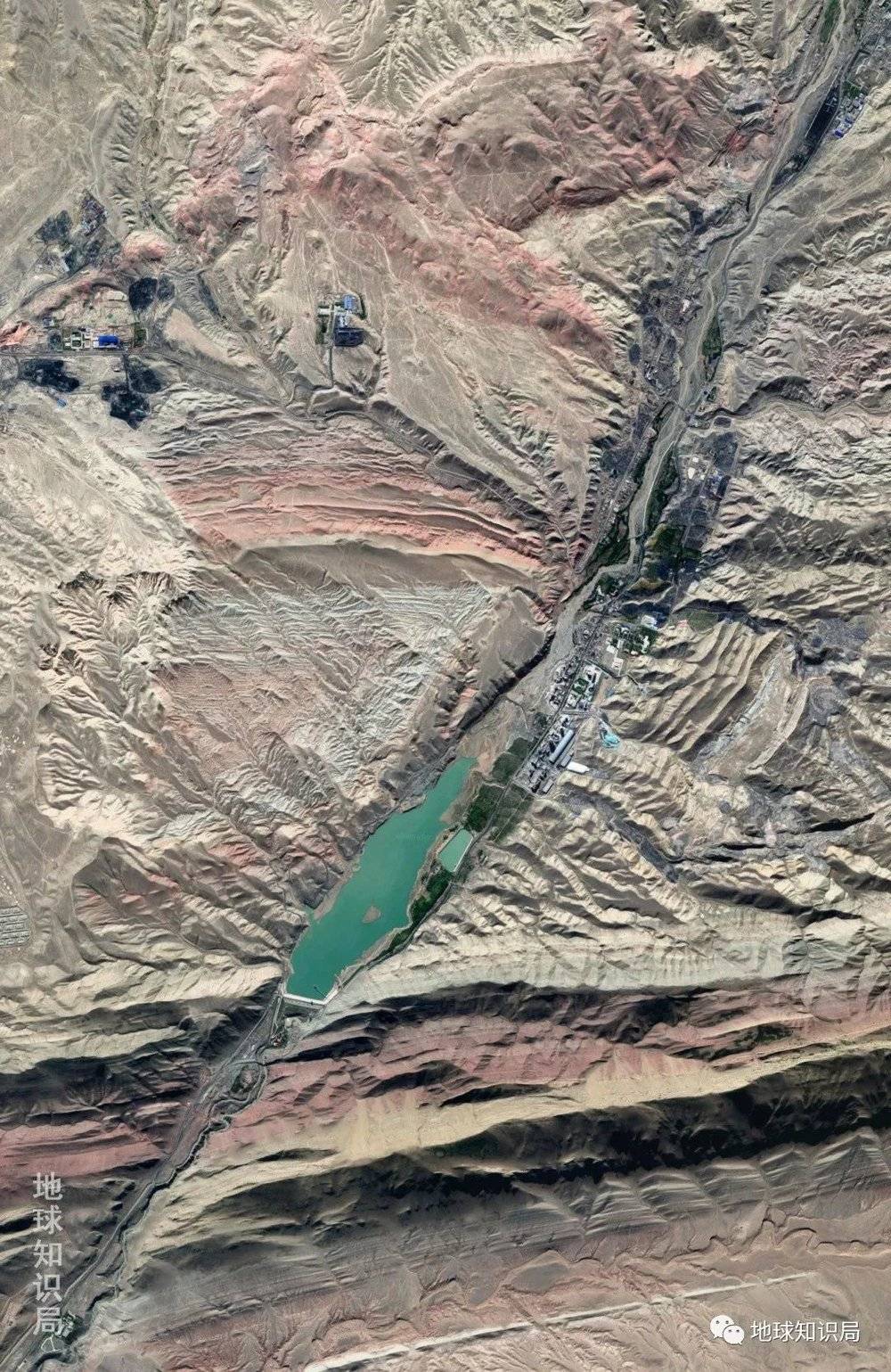 为了保证北疆诸绿洲城市的用水,修了大量的水库。图为乌鲁木齐、昌吉南部的头屯河水库(新疆昌吉-硫磺沟头屯河水库,图像来自google ,map)
