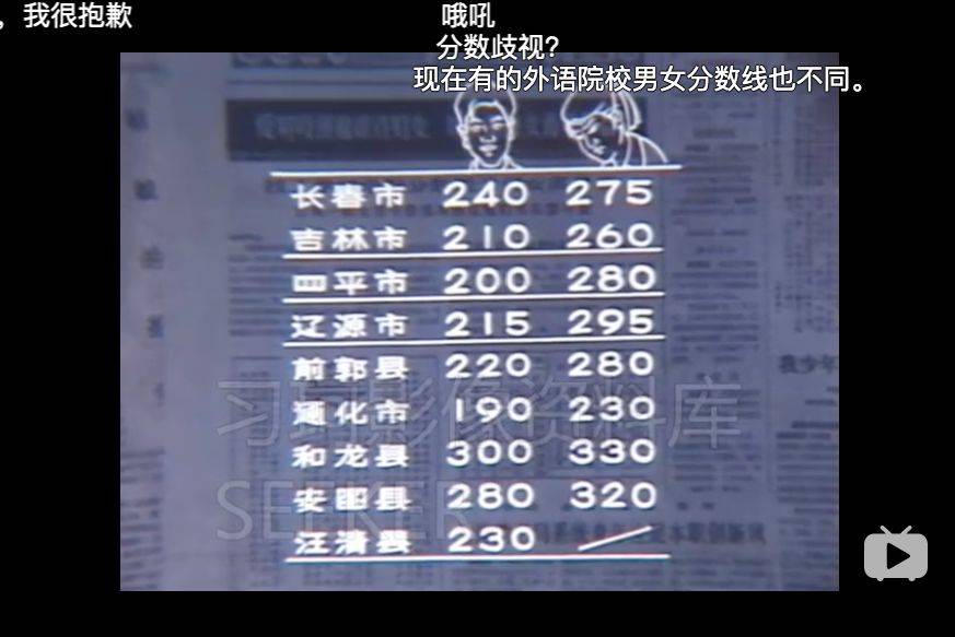 80年代的中国曾出现一期电视节目细数社会所存在的性别歧视。比如一些城市的外语院校录取分数线,男女差异最大可达80分,男性只需要达到女生分数的71%即可。