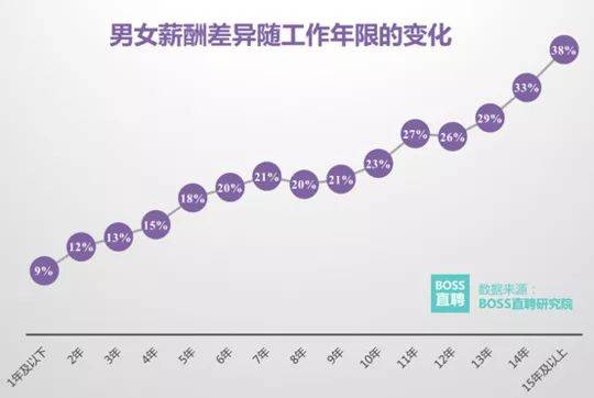 2018年,某线上招聘平台曾统计,中国女性的平均工资是男性的84%。工作过15年后,男女收入差距则拉大到38%。
