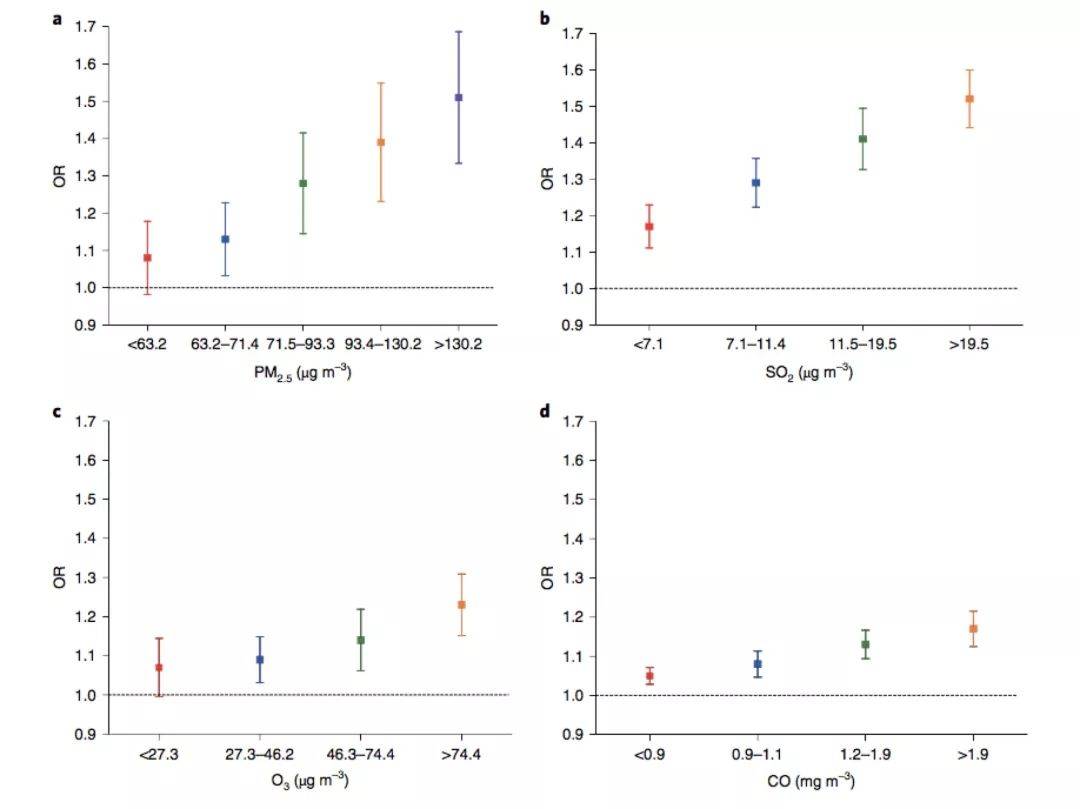 研究涉及污染物包括PM2.5、二氧化硫、臭氧和一氧化碳。