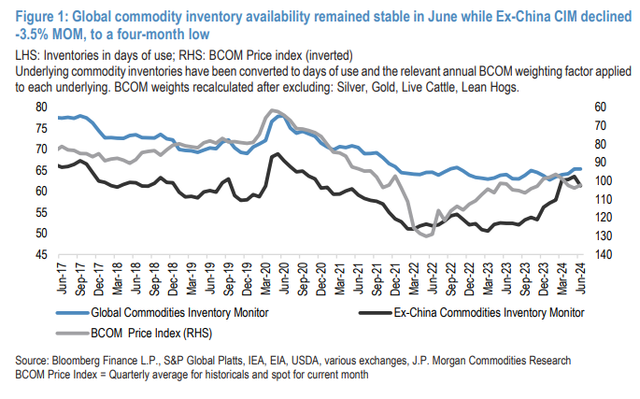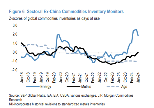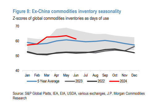 此外,摩根大通指出,尽管大宗商品库存具有季节性,但中国以外地区库存下降速度高于往常: