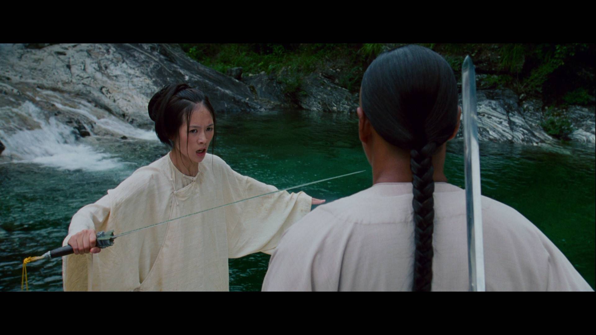 《卧虎藏龙》里,层林尽染、满目青翠的竹林打斗秀美婉约,配上谭盾的深邃东方式音乐,一股深隽中涌动的安静萦绕着打斗的二人,暗喻着心中情感之龙、情欲之虎。