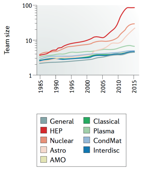 高能物理学家、核物理学家、天体物理学家偏好大研究组。特别是2000年之后,三个领域的爆发,部分程度上源于大研究组项目的研究成果,如:ATLAS。
