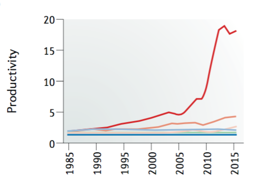大研究组导致高论文产量。数据显示,1985年至2015年,高能物理领域的年均论文量增长了十倍,核物理和天体物理增长了两倍。而其他六个分支的论文量近30年来相对稳定。
